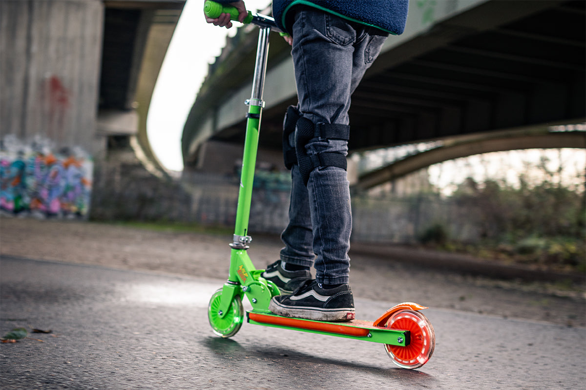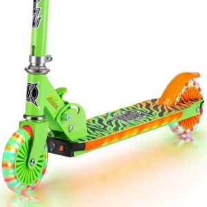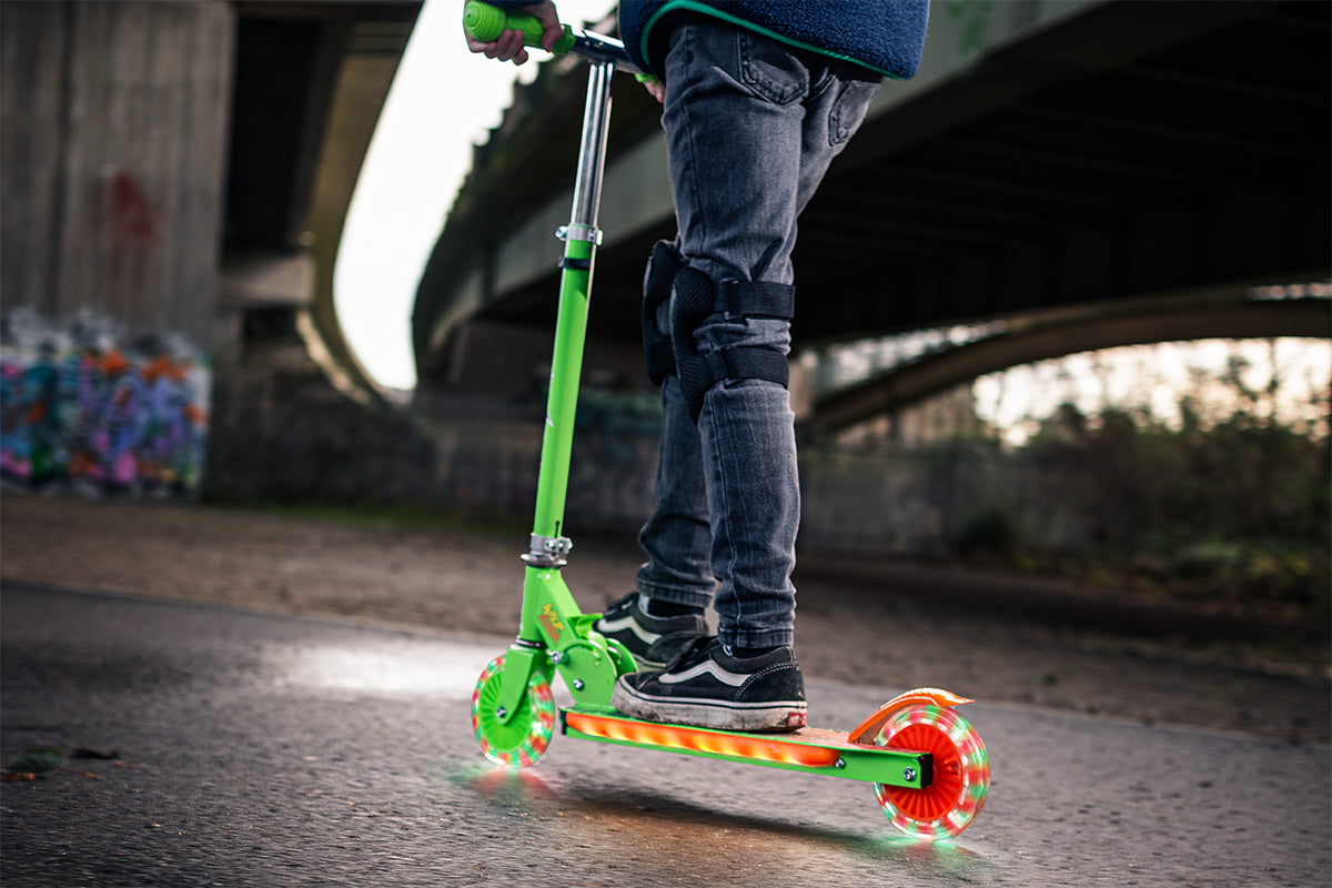 Light Up Fun: The aluminium deck features USB rechargeable LED lights that glow as your child rides, adding excitement with every scoot