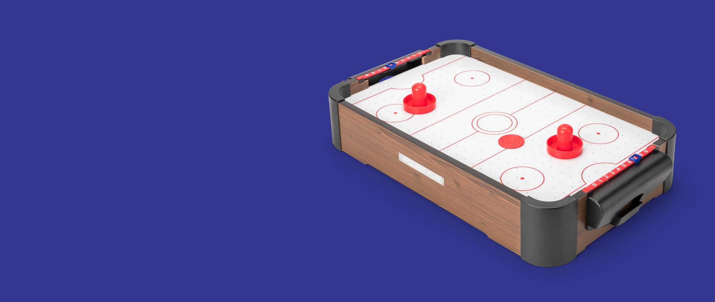 Everything You Need to Play: Comes with an air powered table, 2 pushers, 2 pucks, and slider scoreboards for matches the whole family can enjoy