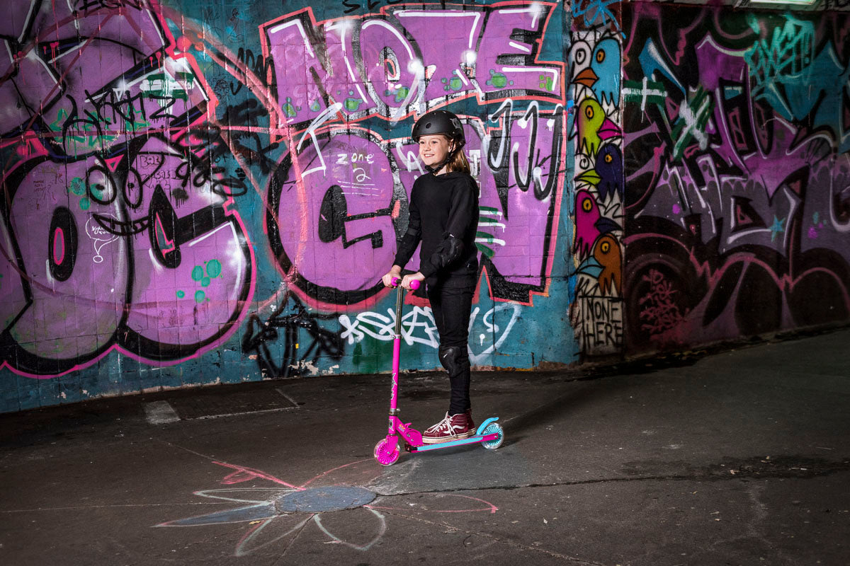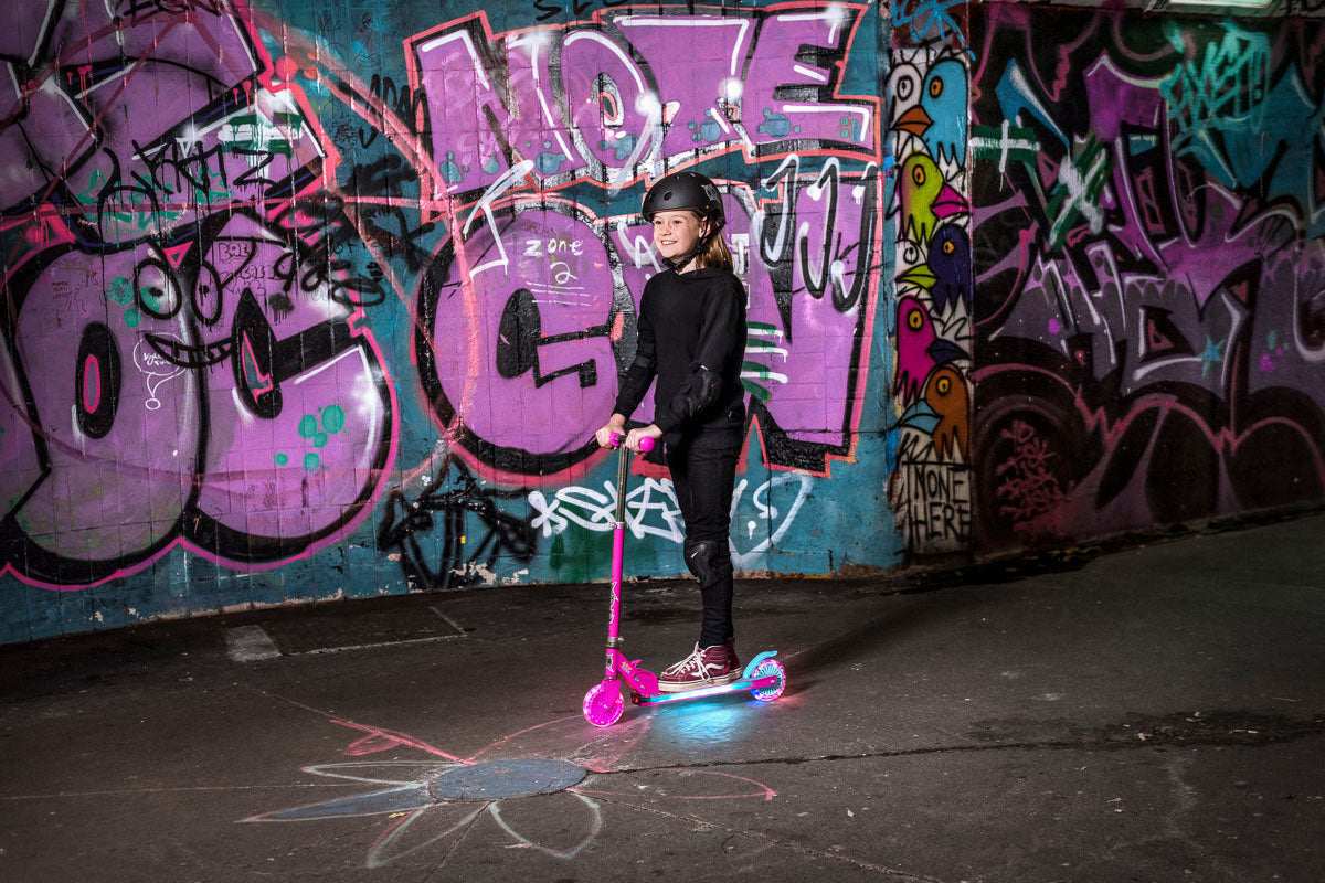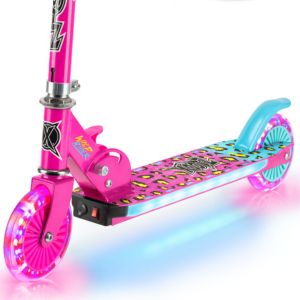 Light Up Fun: The aluminium deck features USB rechargeable LED lights that glow as your child rides, adding excitement with every scoot