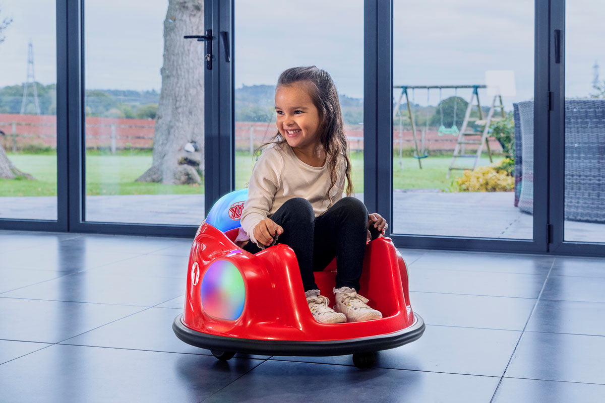 Flashing LED Lights: Featuring flashing sidelights and a glowing back panel, this bumper car lights up any ride, making playtime even more thrilling and visually exciting